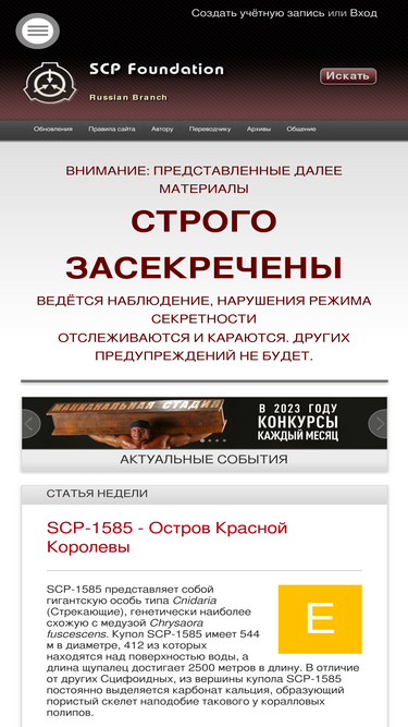 SCP Foundation — это международный коллективный литературный проект, представленный, в основном, стилизованными научно-фантастическими историями. Каждый участник может, так или иначе, дополнять эту сложную, проработанную вселенную.