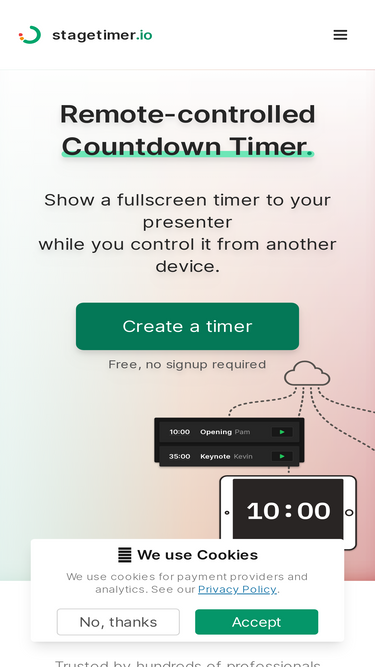 89%Want to create a dashboard with a timer and a YouTube live stream? No problem! Here's how. With Stagetimer you can embed timers on any Website.