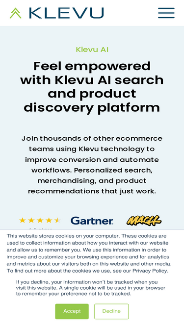 87%We’ve united the power of Searchspring, Klevu, and Intelligent Reach under one bold new company — Athos Commerce — to transform ecommerce.