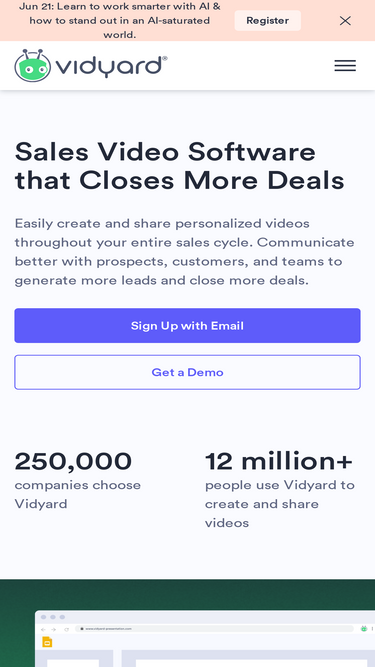 61%Vidyard is an online video platform for business which allows you to increase leads, accelerate your pipeline and delight your customers. Learn more!