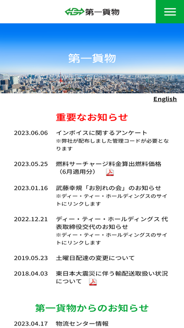 輸送サービス、ロジスティクス・サポートを行う、企業物流専門の「第一貨物株式会社」です。配送・運送や倉庫管理など、物流に関するお悩みはお気軽にご相談下さい。