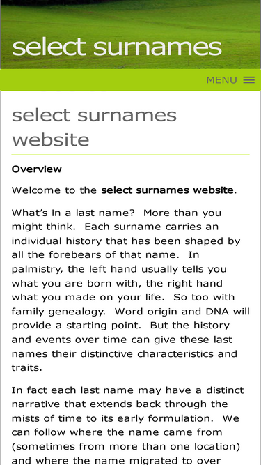 this site contains narratives for more than one thousand select surnames, last names in the english-speaking world.