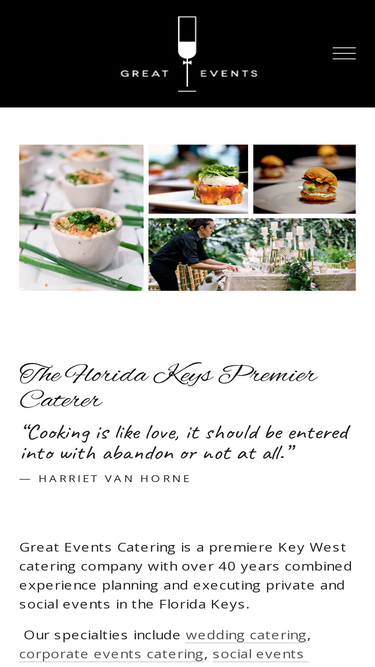 A top-rated Key West catering company, Great Events Catering delivers restaurant quality food and unparalleled service for weddings, private, and social events.