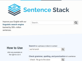 advanced linguistic search tools and built-in sentence correction will accelerate your learning of english through contextual examples, idiomatic phrases, definitions, grammar correction, and more. search over 300 million example english sentences.