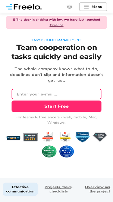 87%Наша місія полягає в тому, щоб надати людям можливість спільно досягати великих речей. Поняття простого співробітництва було втрачено і розбито на сотні фрагментів з незліченними інструментами, що намагаються вирішити кожен фрагмент окремо. Зрештою ми використовуємо окрему систему для чату, іншу - для керування завданнями, третю - для відстежування часу. Це не той спосіб, в який це має працювати. Freedcamp надає безкоштовну та надзвичайно просту у використанні систему.