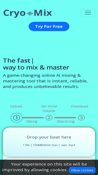 Experience cutting-edge AI vocal mixing and mastering with Cryo Mix, designed to deliver instant and reliable results. Perfect for music professionals and enthusiasts looking to enhance their audio tracks with precision and industry-leading technology.