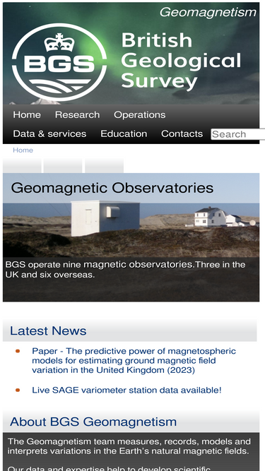 85%this is the home page of geomagnetism at the british geological survey (bgs). find information on geomagnetic observatories, modelling, space weather and the world data centre (wdc)