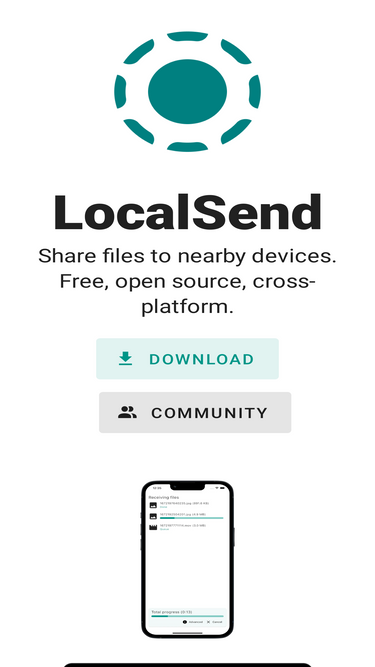 localsend is a free, open-source, cross-platform file sharing tool that allows you to share files to nearby devices.