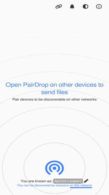 100%instantly share images, videos, pdfs, and links with people nearby. peer2peer and open source. no setup, no signup.