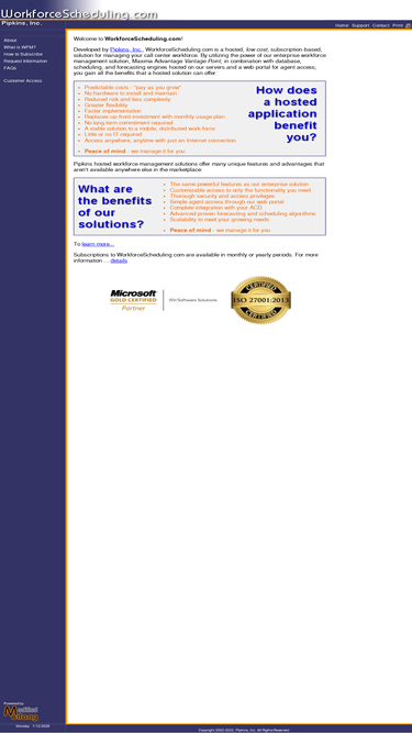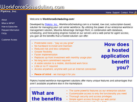 pipkins, inc. workforcescheduling.com - call center workforce management software (scheduling, forecasting). pipkins produces the only workforce management system designed to provide answers to the most difficult call center forecasting and scheduling problems. whether you have 3000 agents or just 30, pipkin's maxima advantage provides the flexiblity and advanced technology you need to manage your call center.