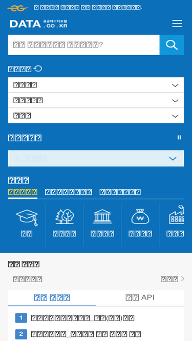 국가에서 보유하고 있는 다양한 데이터를『공공데이터의 제공 및 이용 활성화에 관한 법률(제11956호)』에 따라 개방하여 국민들이 보다 쉽고 용이하게 공유•활용할 수 있도록 공공데이터(Dataset)와 Open API로 제공하는 사이트입니다.