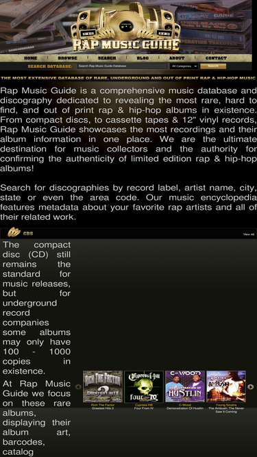 Rap Music Guide Blog features underground hip hop music news, rap videos, free rap music downloads, album reviews, discography, photos & culture.