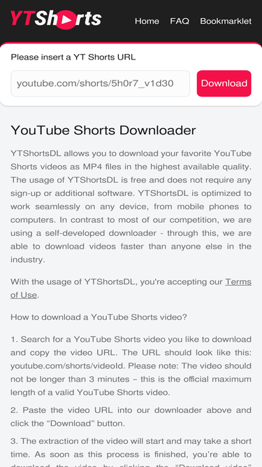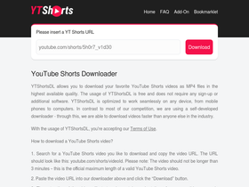 A working YouTube Shorts downloader created by an independent developer. Download YouTube Shorts videos in high quality MP4 format. No registration required, actually working in 2024.