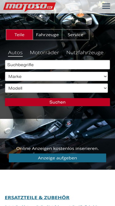 autoteile und motorradteile, neu- und gebrauchtwagen, motorräder und tuning-zubehör - motoso.de ist dein auto- und motorradmarkt im internet.