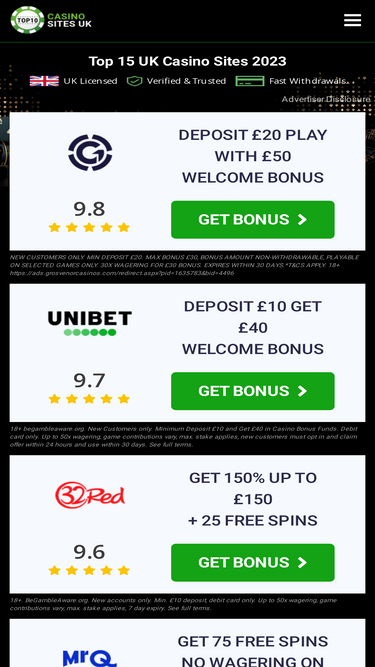 Top 15 Online Casinos UK – Bonuses Updated on: The best online casino sites in the UK, are here in a curated list, for your convenience. Other than amazing bonus offers, we’re looking for stable software experience, wide range of online casino games, variety of payment methods, easy deposits and withdrawals, and great customer support. […]