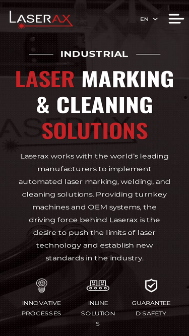 Industrial Laser Markers - Laser Marking Systems Laserax offers fiber lasers , UV lasers and CO2 lasers with broad laser power ranges. Manufacturers use our laser systems to create permanent marks on metals, sands, plastics, and other organic materials. Best Marking Speed & Quality Our laser markers deliver unmatched speed and quality. Flexible Integration We can build custom laser systems with adjustable fiber cable lengths and laser dimensions that are suitable for any environment.