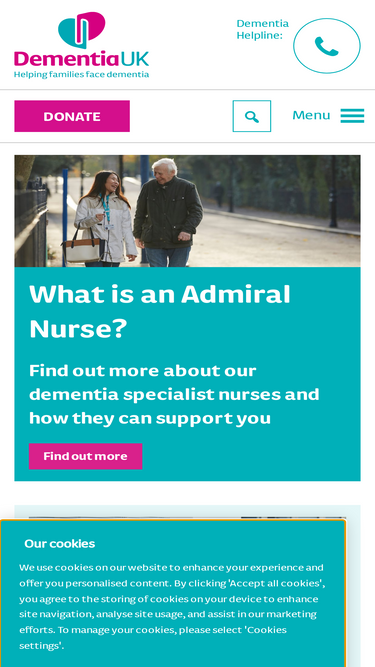 74%Dementia UK is a charity that provides Admiral Nurses for families affected by dementia. Call our Dementia Helpline to find out how we can support you.