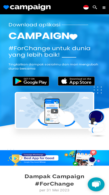 ambil aksi dari berbagai isu sosial dan konversikan menjadi donasi. gabung bersama lebih dari 120k+ changemaker lainnya untuk ciptakan perubahan baik di campaign #forabetterworld
