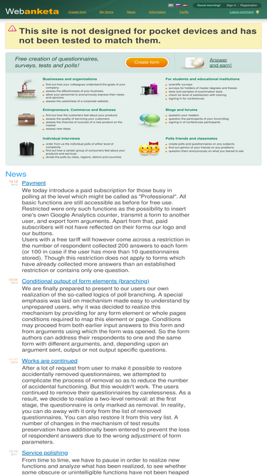 Online form builder, that helps to create private or public multilingual questionnaires, surveys or polls.
