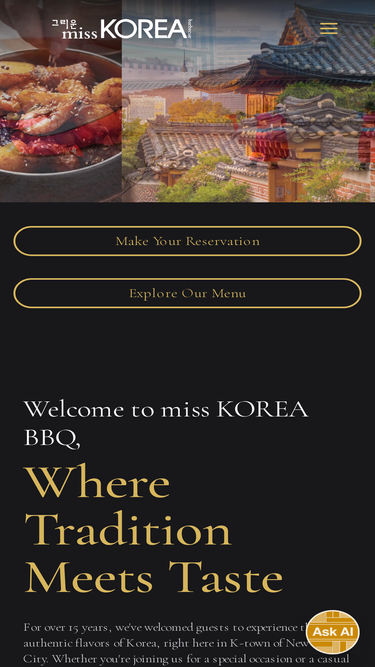 Experience authentic Korean BBQ at miss KOREA BBQ in NYC. Enjoy traditional Korean dishes and a luxurious atmosphere for every occasion. Make your reservation today.