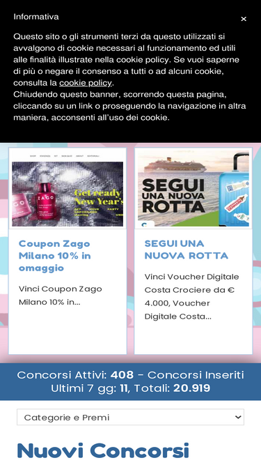 concorsi a premi, giochi, lotterie gratuite, sondaggi, raccolte punti e altre risorse gratuite per vincere online premi, regali e campioni gratuiti, ottenere buoni sconto, guadagnare su internet.