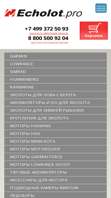 85%интернет магазин мир эхолотов - у нас можно купить эхолот, картплоттер, подводную камеру, навигатор с доставкой по всей россии, оформляйте заказ по телефону 8 (800) 200 22 92.