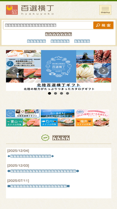 欲しいがきっと見つかる百選横丁!北陸を中心に全国各地の特産品から工芸品、生活用品まで、産地直送でご自宅にお届けします。 旬の海山の幸やこだわりの地酒、伝統工芸品など5,000点以上の品揃え!隠れた名店、厳選された逸品を探してみませんか?