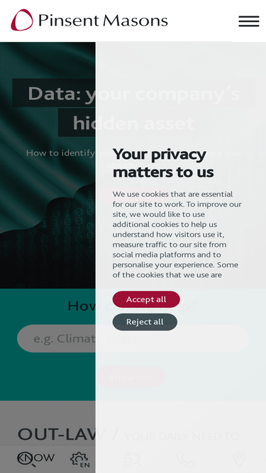 Pinsent Masons provides legal services globally via a number of entities. Most of the firm’s main IT systems are located in the UK and controlled by Pinsent Masons LLP. We are a data controller of the personal information we process and are therefore responsible for ensuring our systems, processes, suppliers, employees and partners comply with data protection laws in relation to the information we handle.