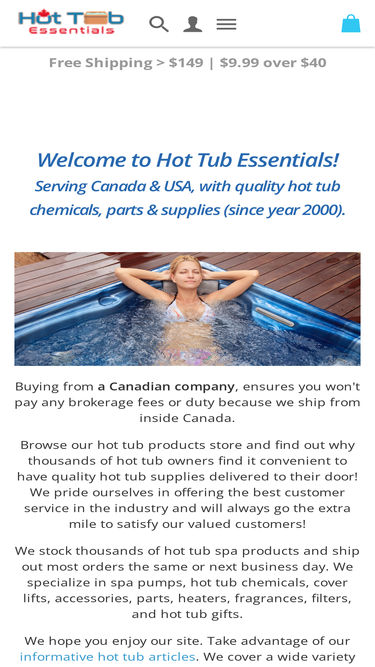 canada's original online dealer of hot tub chemicals, supplies, parts & accessories. cheap or free shipping, serving canada & usa.