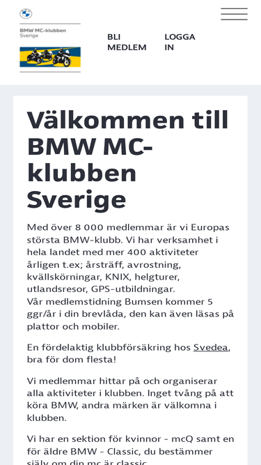 vi är en rikstäckande klubb för folk med intresse för bmws motorcyklar. vi har verksamhet från ystad till treriksröset inom snart sagt allt som rör motorcykelåkande.