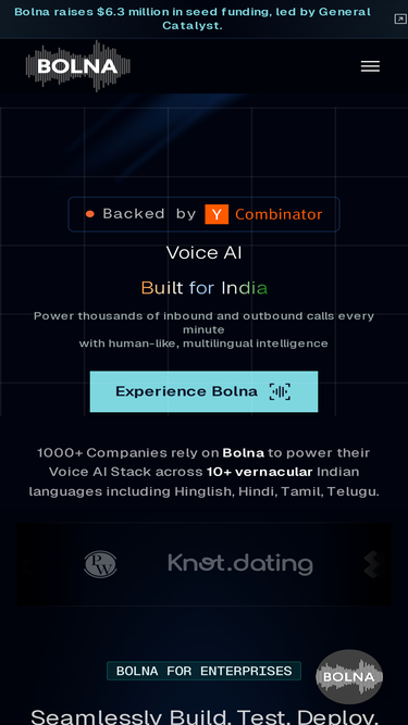 Scale customer support, sales & recruitment with Bolna Voice Agents. Inbound and outbound calls in vernacular Indian languages like English, Hindi, Hinglish.