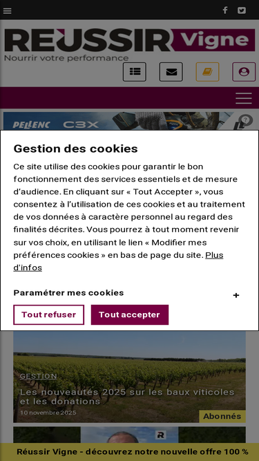 Revue agricole REUSSIR VIGNE - revue mensuelle nationale d'informations agricoles sp�cialis�e dans la vigne et le vin