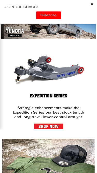 Total Chaos authorized dealers. Where to buy Total Chaos Upper Control Arms and Long Travel Suspension Kits.