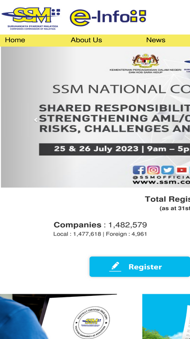 SSM e-Info : Online ROC/ROB search & purchase service. Accessible to all via Internet with online payment options (Prepaid, Visa, Mastercard, AMEX).