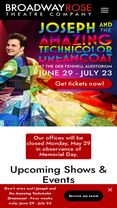 Broadway Rose Theatre presents mainstage and children’s theater productions, educational programs, and special performances. Come see our recent renovations!
