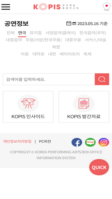 예술경영지원센터 운영, 공연 예매 정보 집계 및 DB, 예매상황판, 공연통계 등 제공.