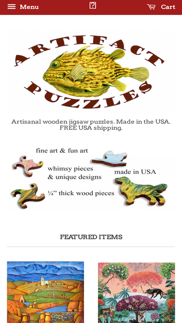Artifact Puzzles is an artisanal puzzle company that designs and manufactures artsy laser-cut wooden jigsaw puzzles for adults and families. Ecru Puzzles is the line of Artifact Puzzles with a matte finish to reduce glare. All our puzzles are Made in USA.