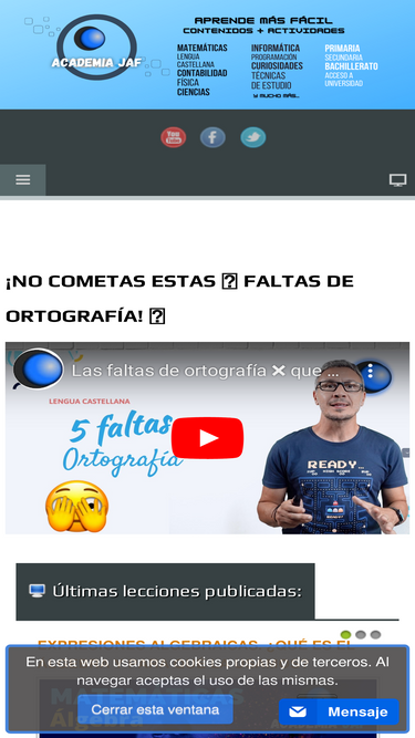 clases en vídeo gratis de matemáticas, lengua española o castellano, física, contabilidad, diseño web-gráfico, informática, etc. dirigidas a estudiantes de primaria, eso, bachiller, universidad y a todo aquel que tenga inquietud por aprender. ejercicios resueltos y actividades de ejemplo para practicar.