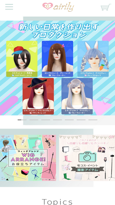 コスプレのウィッグやカラコンの通販はエアリー。コスプレに最適なエアリーのウィッグは発色が美しくカメラ映りが良いと評判です。カラーコンタクトレンズも豊富に取り揃えております。