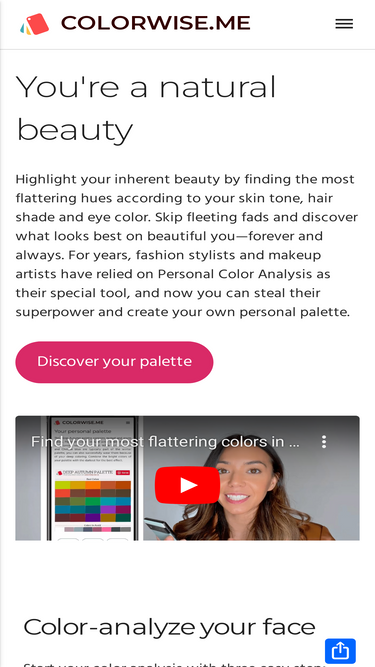 With colorwise.me, you become your own stylist. Explore your personal coloring and take your beautiful palette everywhere with our top-rated mobile app.