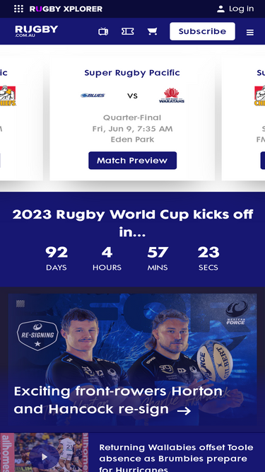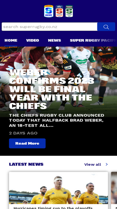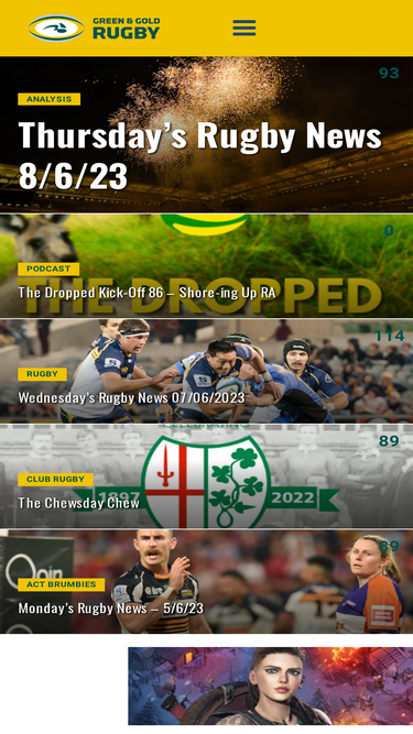 73%Champ Rugby home page, containing news stories, and club information.