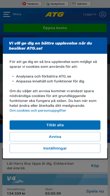 välkommen till atg. här kan du spela på häst, sport och casino. läs de senaste nyheterna, ta del av experternas speltips och se livesändningarna.