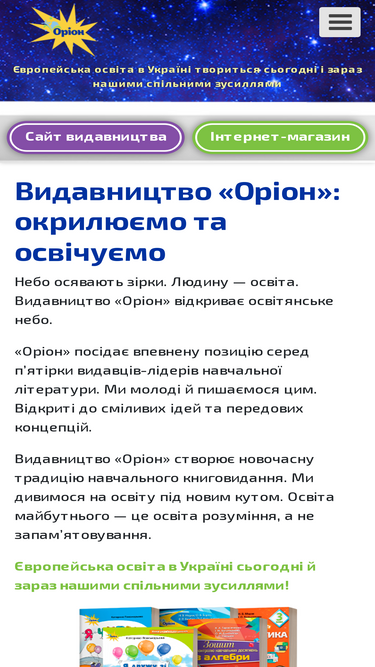 уовц «оріон» — видавництво навчальної літератури, що створює підручники, посібники, атласи й контурні карти, методичні матеріали для вчителів.