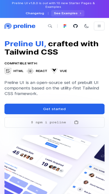 96%Get started with the most popular open-source library of interactive UI components built with the utility classes from Tailwind CSS