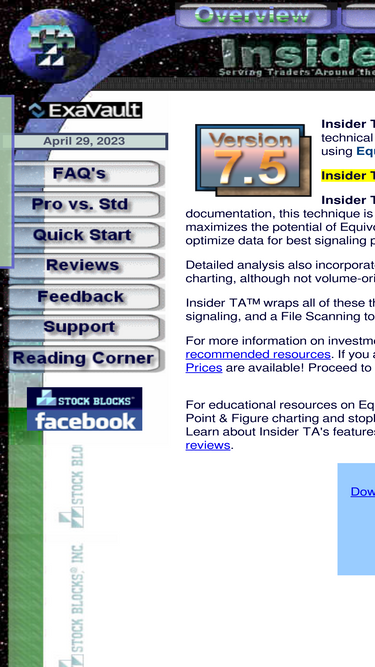 insider ta is volume-based technical analysis with interactive equivolume charting that optimizes for best buy and sell points. point & figure analysis, scanning tool, and many innovative techniques. includes an ascii downloader for getting free stock data from alpha vantage and iex cloud data services.