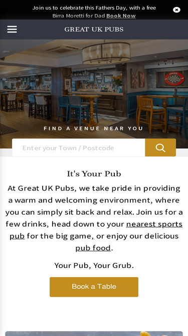 welcome to great uk pubs, a collection of community, high street and destination pubs with over 350 locations across the uk. we serve proper pub food and drinks - find your local pub today!