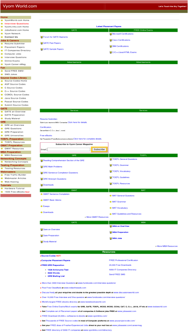 lots of latest 2007 placement papers, sms jokes, free sms, gate, gre, toefl, gmat, mba entrance exams, source codes and programming projects