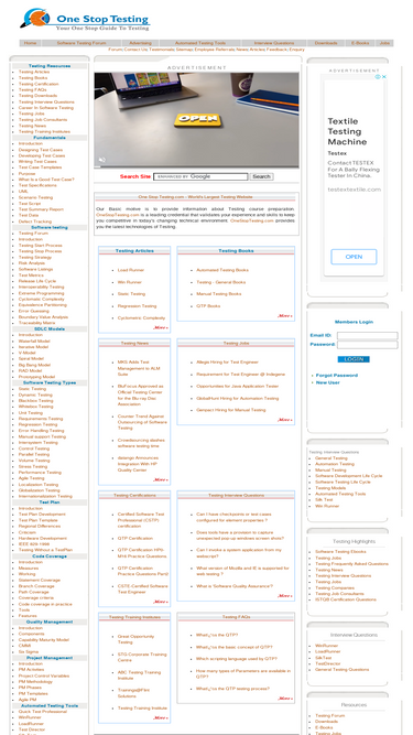 software testing information - different types of software testing, functional testing, non-functional testing, system testing, unit testing, performance testing, agile scrum methodology, automation testing, software testing tools - winrunner, loadrunner, qtp, telerik. software testing jobs & interview questions