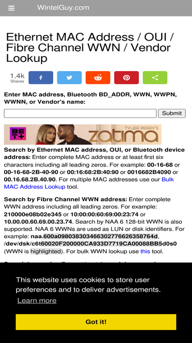 100%Free MAC address, OUI, WWN, and Vendor Name search.