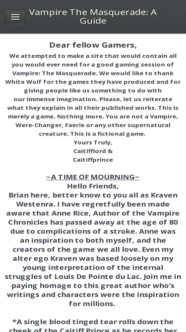 The home page for Vampire The Masquerade: A Guide. Rules, Sheets, thoughts and opinions on all things Vampire: The Masquerade.